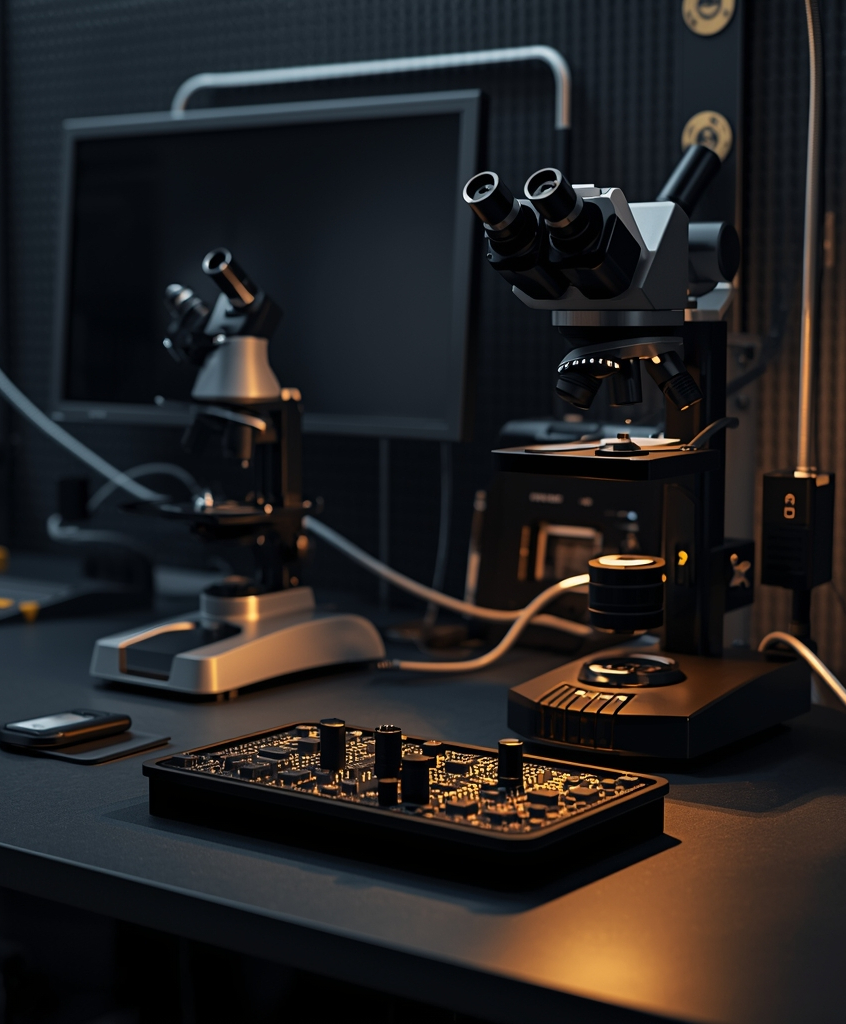Precyzyjna naprawa w laboratorium elektronicznym z oprzyrządowaniem przemysłowym.